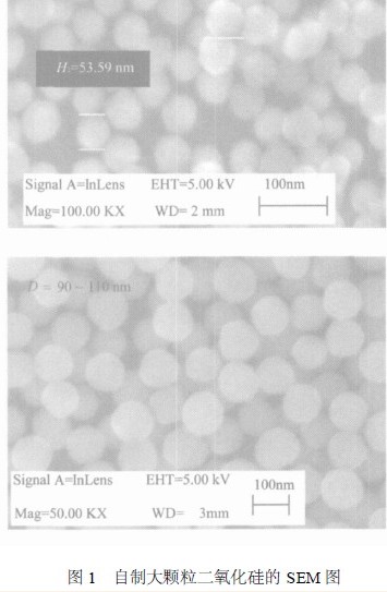 母核二氧化硅的均匀性、分散性的好坏对大颗粒二氧化硅的制备起着决定性的作用, 作者通过以下几个步骤, 制备出了高均匀性的母核二氧化硅。