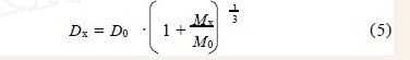 根据上式估算出硅粉在该条件下所能产生的二氧化硅的量Mx 。在理想状态下, 如果硅粉水解产生的新的硅酸分子完全和母液中作为母核的二氧化硅进行反应而不产生新核, 则可以得到最终二氧化硅颗粒的粒径大小Dx与母核二氧化硅粒径大小D0 之间的关联方程: