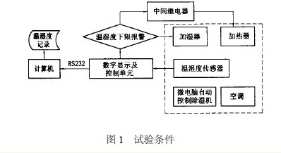 在实验室条件下利用称重法测量硅溶胶干燥过程,试验条件如图1 所示。建立封闭的干燥间,并配备空调和具有微电脑控制的除湿机,严格控制干燥间的温度和湿度,同时利用温湿度传感器实时测量干燥间的温湿度变化,并通过逻辑控制电路判断与设定值的差异,根据高低差异启动或停止加热和加湿系统进行调节。在这样的条件下,可以获得模拟生产车间的温湿度环境,温度波动±1 ℃,湿度±3 %。干燥间的风力通过风扇提供,并用热球式风速计测量空气流动的速度。