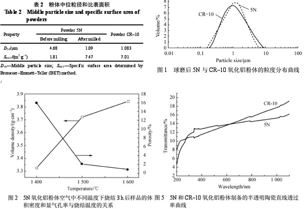 关键词:高纯度氧化铝粉体;半透明氧化铝陶瓷;研磨;粒度分布