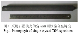 如图1 所示,定向凝固TiNi 合金铸锭的尺寸为Φ20mm×200 mm. 铸锭表面和石墨模壳有一定的反应,但表面比较光滑.