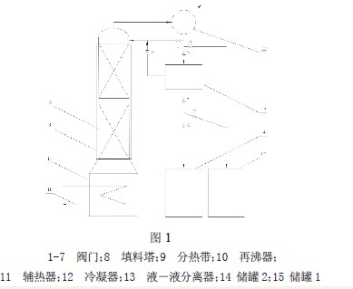 第一步,填料塔相当于提浓塔,对加入塔釜的原料进行普通精馏,调节回流比,在塔顶可得到乙醇-水的共沸物,收集至储罐1。