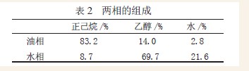 第四步,填料塔相当于回收塔。将储罐2 中富水相导入塔釜进精馏,塔顶凝液以一定比例采出,初馏液分为两相,上层为富烷相,可存入储罐1,下层为富水相,可存入储罐2。两相的大致组成如表2 所示。此后比例采出的塔顶凝液均为乙醇-水的二元共沸物,导入储罐1。塔釜残液几乎全为水,可以直接排放。