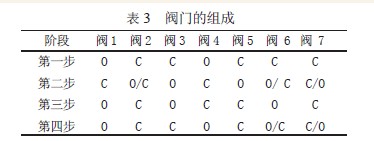 阀1 至阀7 在以上各步中的状态如表3 所示,其中O代表Open 开),C代表Close 关),符“号/”前后的字母分别代表这一步当中该阀的先后两种状态。
