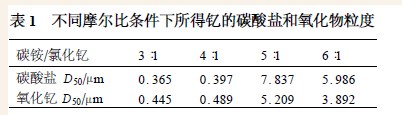 2. 1 碳酸氢铵与氯化钇的摩尔比对粒度的影响