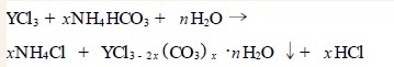 碳铵含量充足时, 碳酸钇与碳酸氢铵形成复盐, 结晶化反应为: