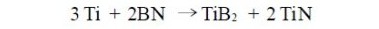 Ti250Ni 形状记忆合金中Ni 的加入,使这种钛合金的熔点降到了1321 ℃,使该钛合金在1600 ℃时,已过热将近300 ℃,有足够的流动性和很好的铸造性能,完全满足了熔模精铸对金属熔液的要求。而在1600 ℃下的钛熔液,从热力学角度讲,Ti 与氮化硼可能发生反应: