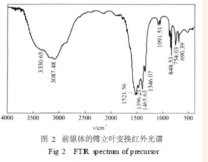 前驱体沉淀物的傅立叶变换红外光谱见图2。