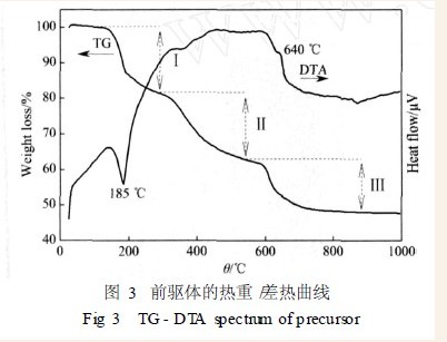 图3为前驱体在空气中由室温加热至1000℃的热重( TG)和差热(DTA)曲线。