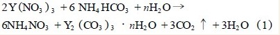 碳铵充足时,碳酸钇与碳酸氢铵形成复盐,结晶化反应为: