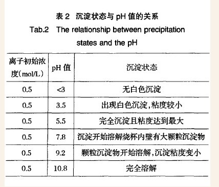 实验发现,控制不同的pH值,沉淀状态不同,如表2所示。本实验选取了两个沉淀点pH=7.8和pH=9.2,作为对比进行重点讨论。
