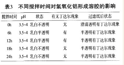 2.3.不同搅拌时间对氢氧化铝溶胶形成的影响