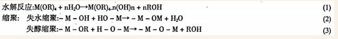 缩聚反应可以连续进行, 直至生成金属氧化物.总的反应式表示为: M (OR) 4 + H2O= M02 + 4HOR式中M为金属,也可以是非金属,如Si , Ti 等,R为有机基团,如烷基. 制备的溶胶中含有大量的水和醇, 经干燥、焙烘除去溶剂可得到具有网络结构的凝胶膜. 水和醇的量对溶胶凝胶性质有很大的影响. 由正交实验得出二氧化硅溶胶制备的最佳工艺:水硅比为4 ; 醇硅比为5 ; 酸硅比 为0.02 ; 放置时间为4h.