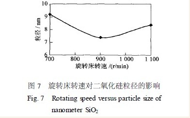 根据以往的实验经验,高的旋转床转速有利于得到粒径微细的产品,但当转速大于1 000 r/ min 时,转速的增加对粒径的减小没有明显的促进作用。
