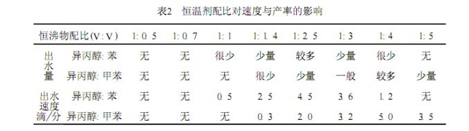 2.3.1 对甲苯磺酸作催化剂, 苯—异丙醇—水作恒沸剂