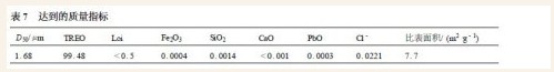 (1)通过氨转化、草酸转化二步法,在选定条件下,可稳定制得D50 = 1~2μm 的Y2O3粉末。经大样证实,收率达97 %以上,质量指标如下:(%)(见表7)。
