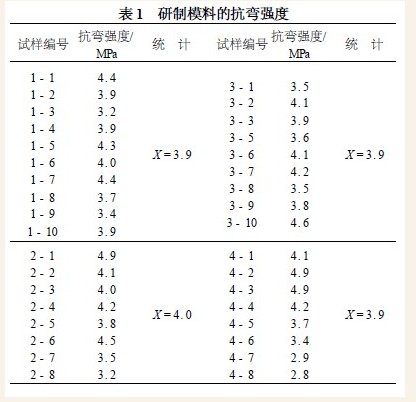 模料的组分及配比确定后,其性能也就相应地确定了,模料需要有一定的强度,以保证在生产过程中不致破坏,模料的抗弯强度按HB5350. 3 - 86《熔模铸造模料抗弯强度测定方法》测定,其结果见表1。由表1 数据可知,模料的抗弯强度为3. 9 MPa,达到了钛合金熔模精密铸造对模料的强度要求。