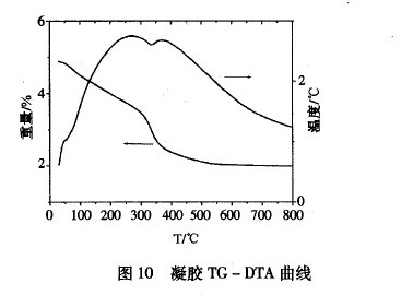 进行了胶体的浓度一粘度、温度一粘度参数测定;凝胶IR红外光谱测定;凝胶TG-DTA曲线测定。